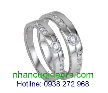 Nhẫn cưới Vàng trắng 14K gắn Kim Cương