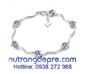 Lắc tay Amethyst vàng trắng 14K