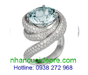 Nhẫn đính hôn vàng trắng 14K gắn kim cương