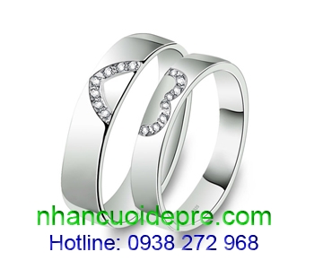Nhẫn cưới vàng trắng 14K gắn kim cương