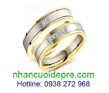 Nhẫn cưới vàng 18K gắn kim cương